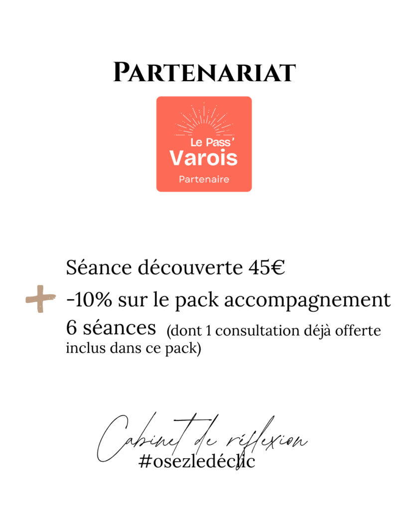 - Vous avez une séance offerte dans chaque accompagnement de 6 séances proposé.